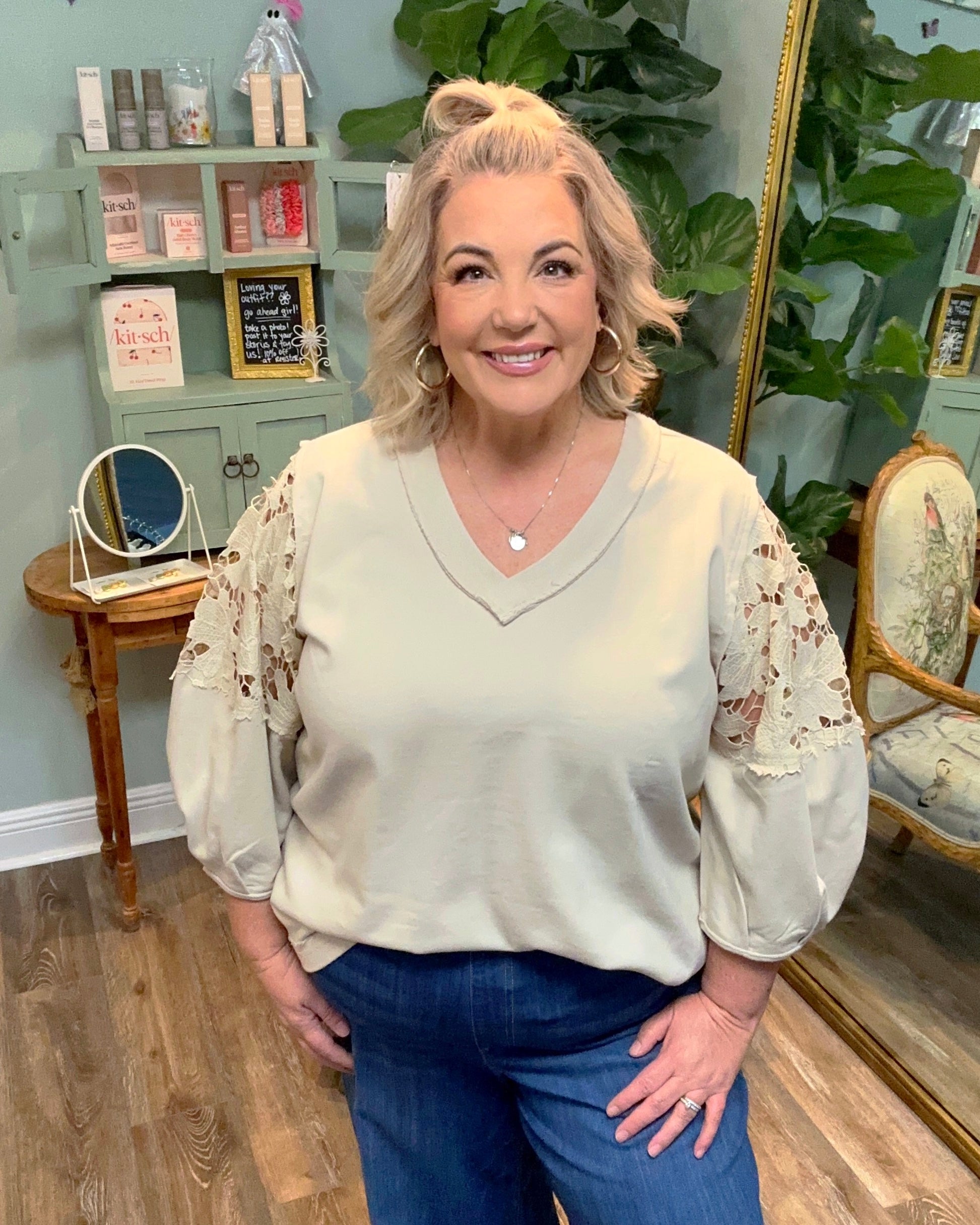 Experience ultimate comfort and style with our Almond Terry Knit Sweatshirt! Made with soft, terry material, this top will keep you cozy all day long. The eyelet sleeve adds a touch of elegance, making it perfect for any occasion. Upgrade your wardrobe and feel fabulous in our must-have sweatshirt!
