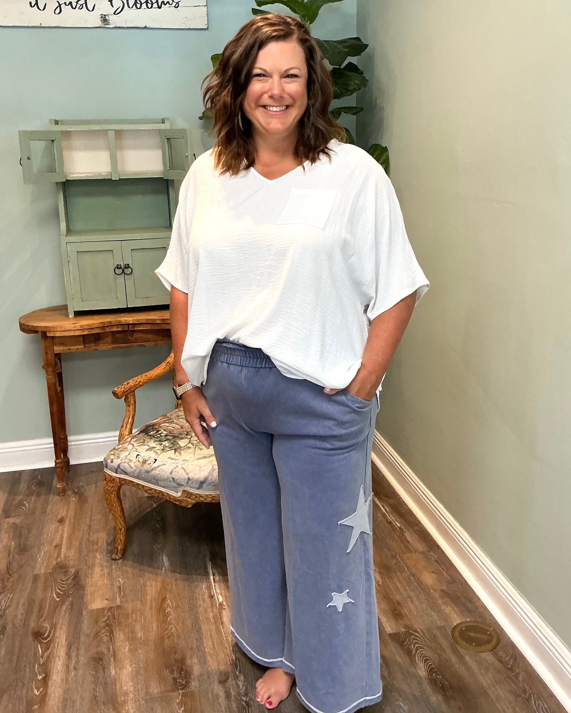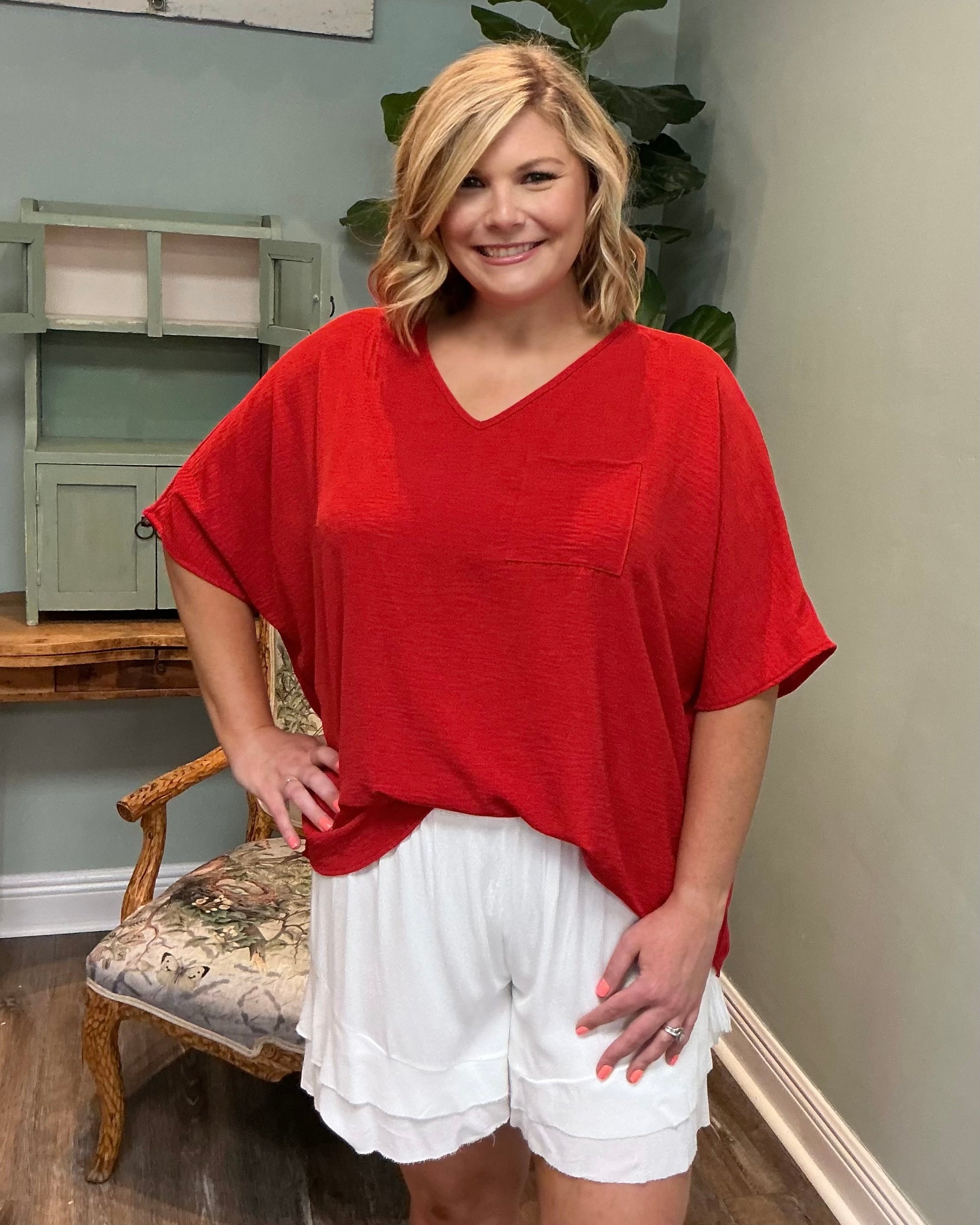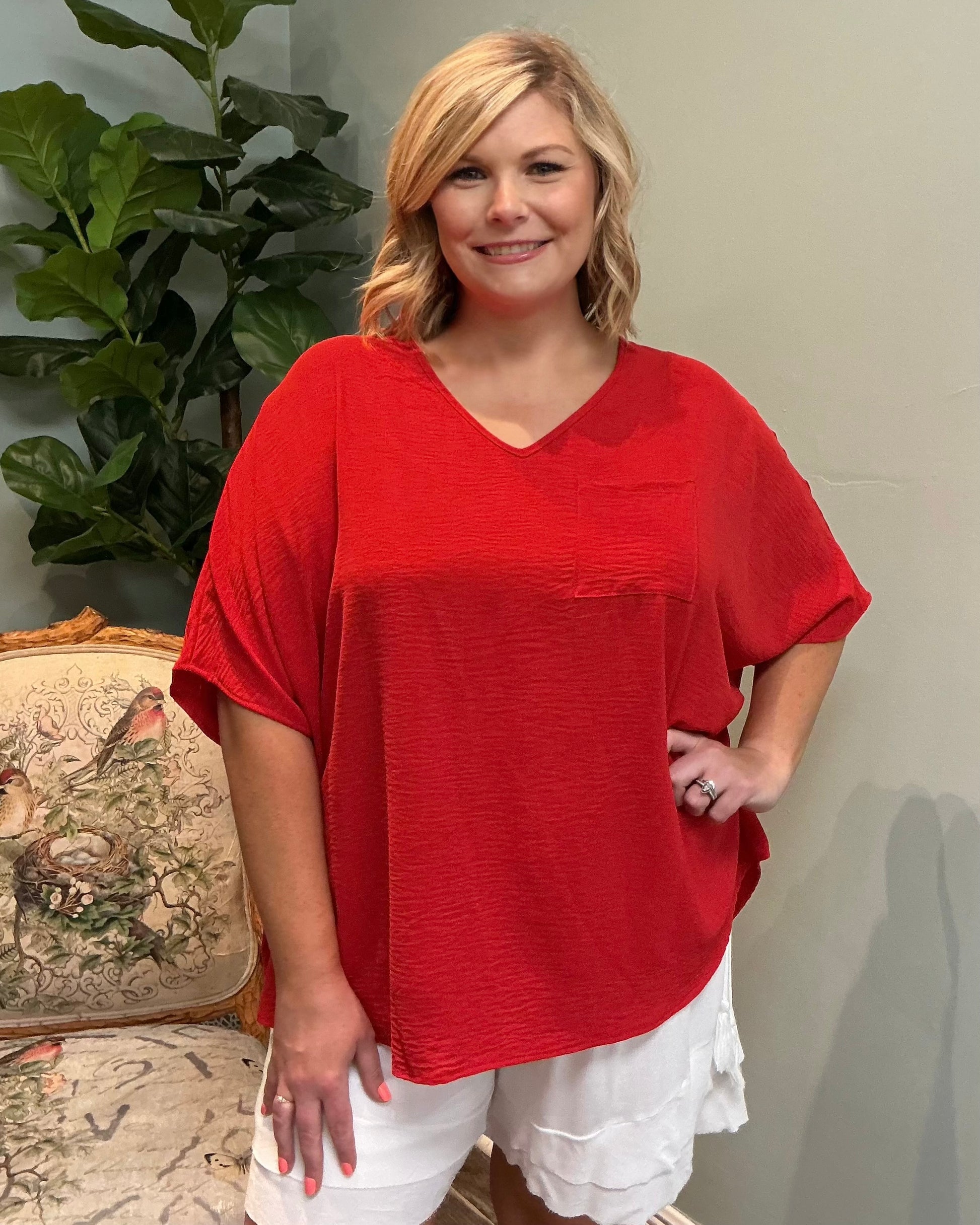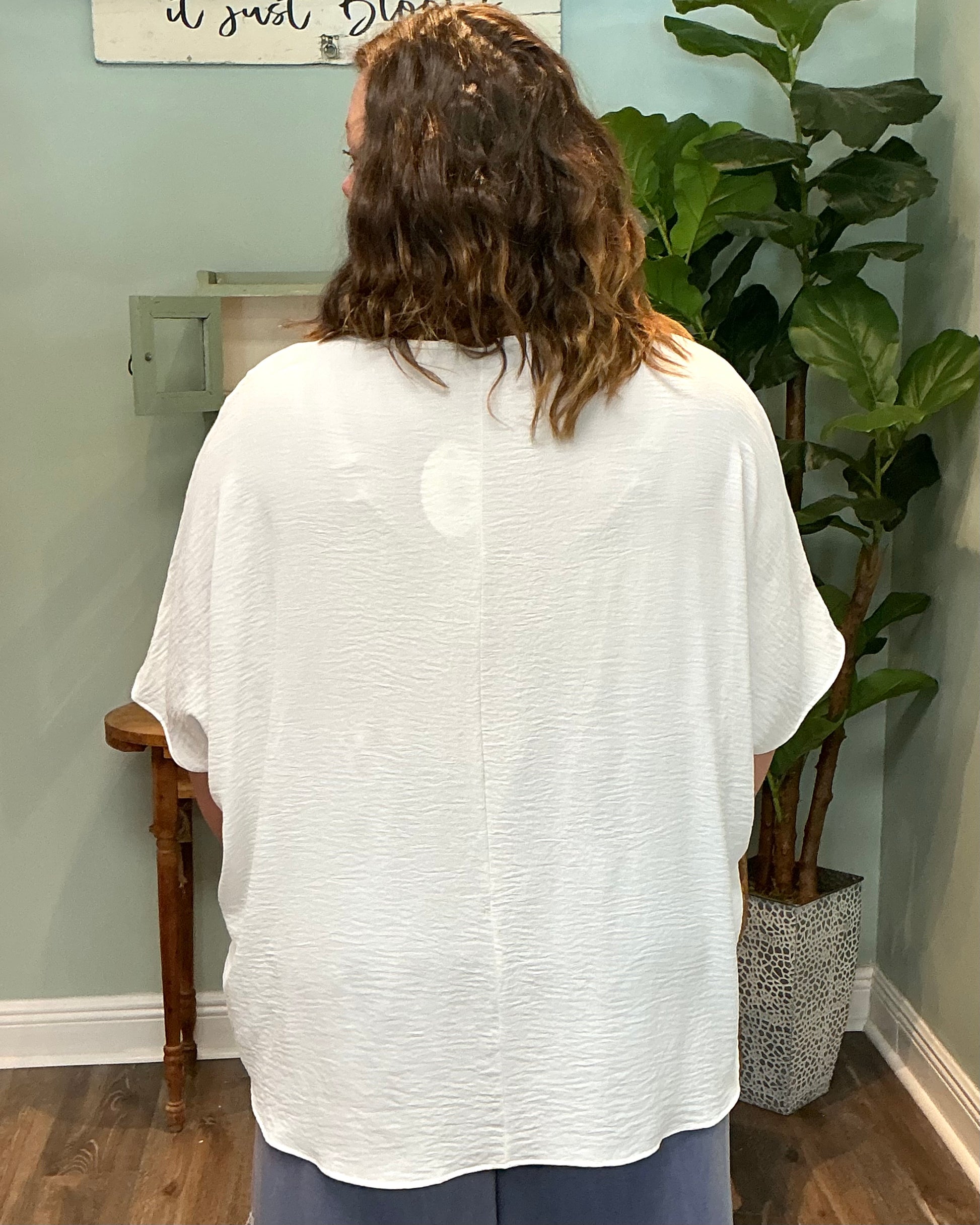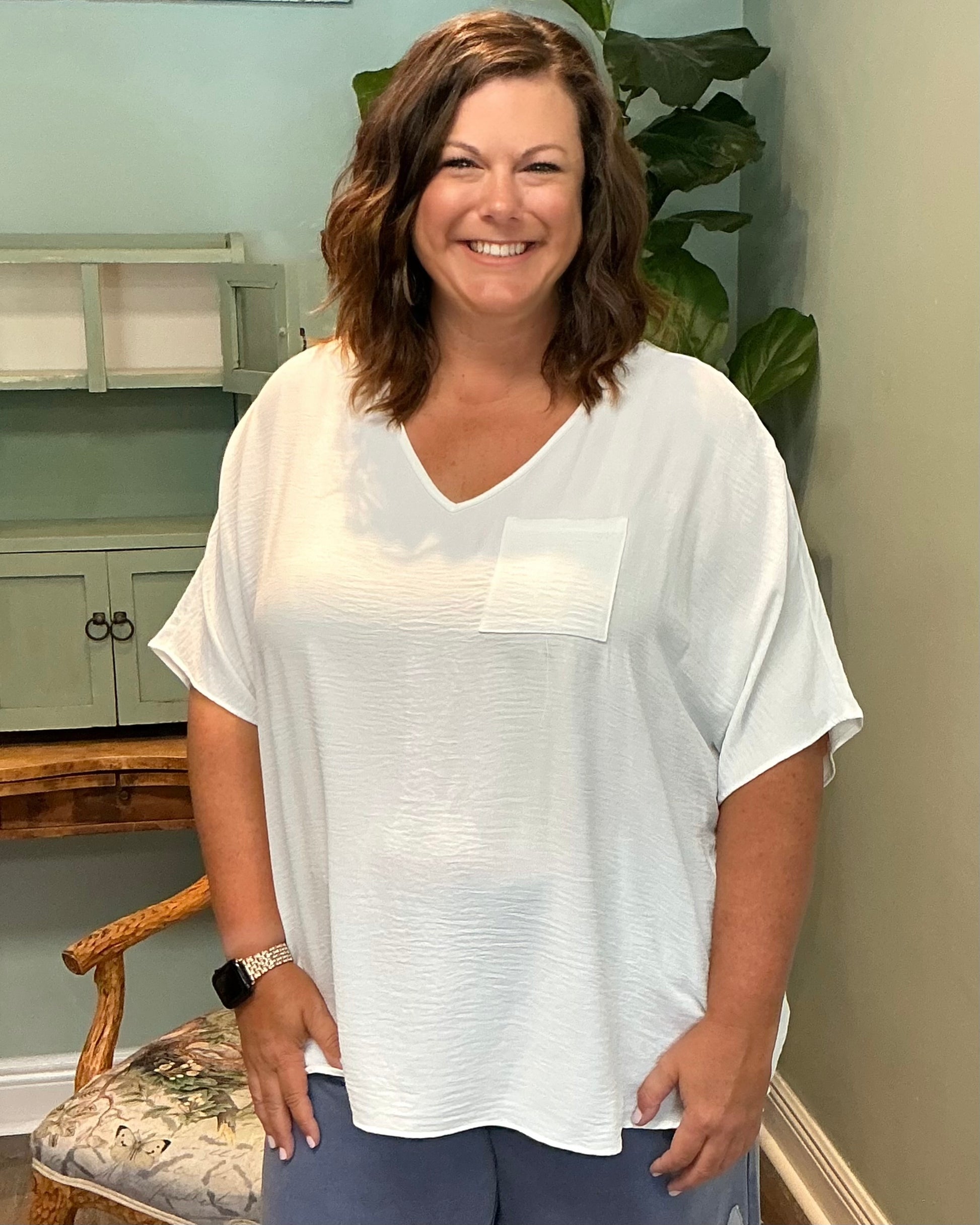 This everyday flowy top is soft, simple, and effortlessly flattering. With its relaxed fit and airy feel, it’s made for busy days, coffee runs, and everything in between. Easy to style up or down—this one’s a closet staple you’ll keep coming back to.