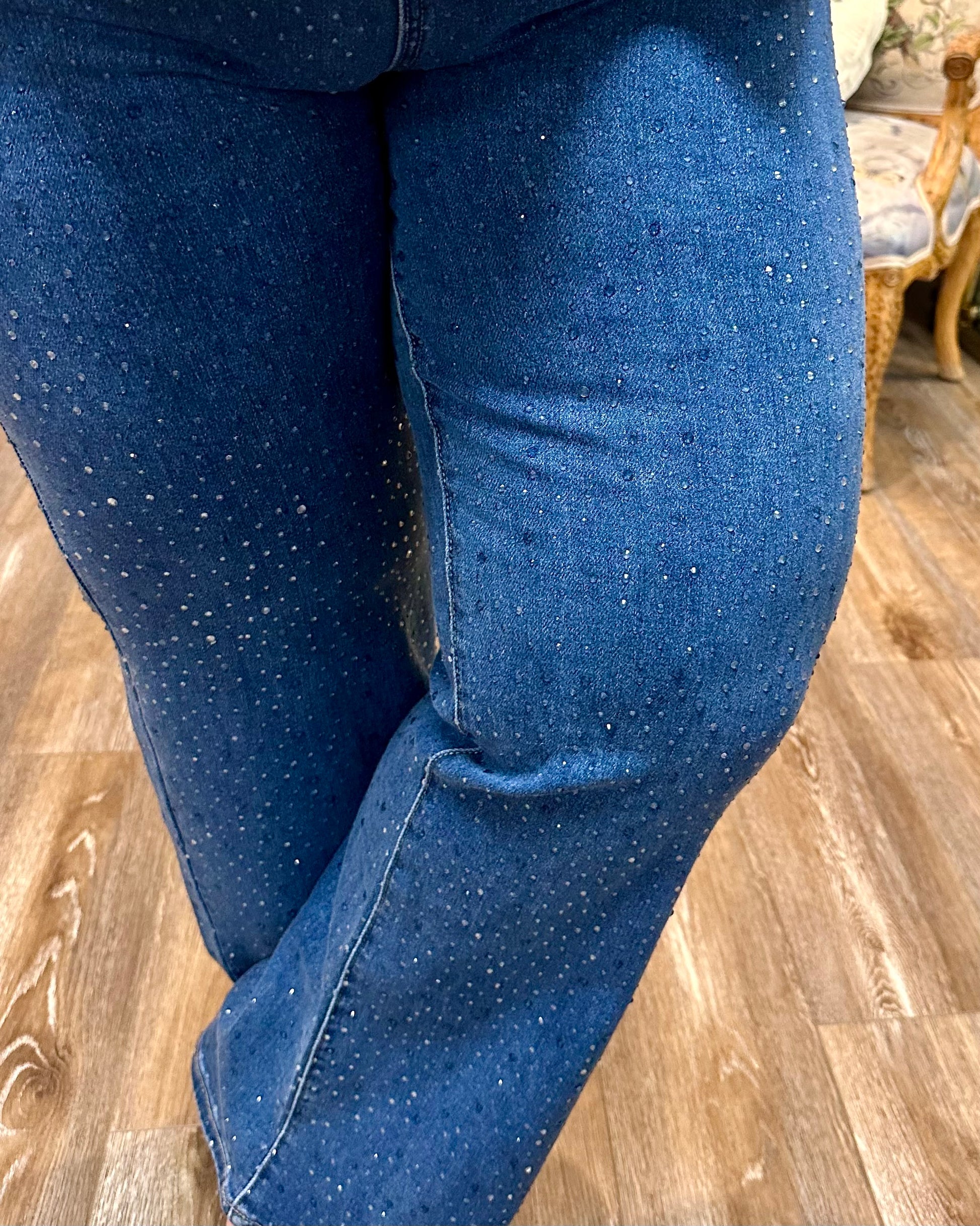 Upgrade your denim game with our Bedazzled Boot Cut Jeans! These jeans offer a touch of sparkle with their bedazzled detailing, making you stand out and feel confident. Elevate any outfit with these eye-catching jeans. TTS