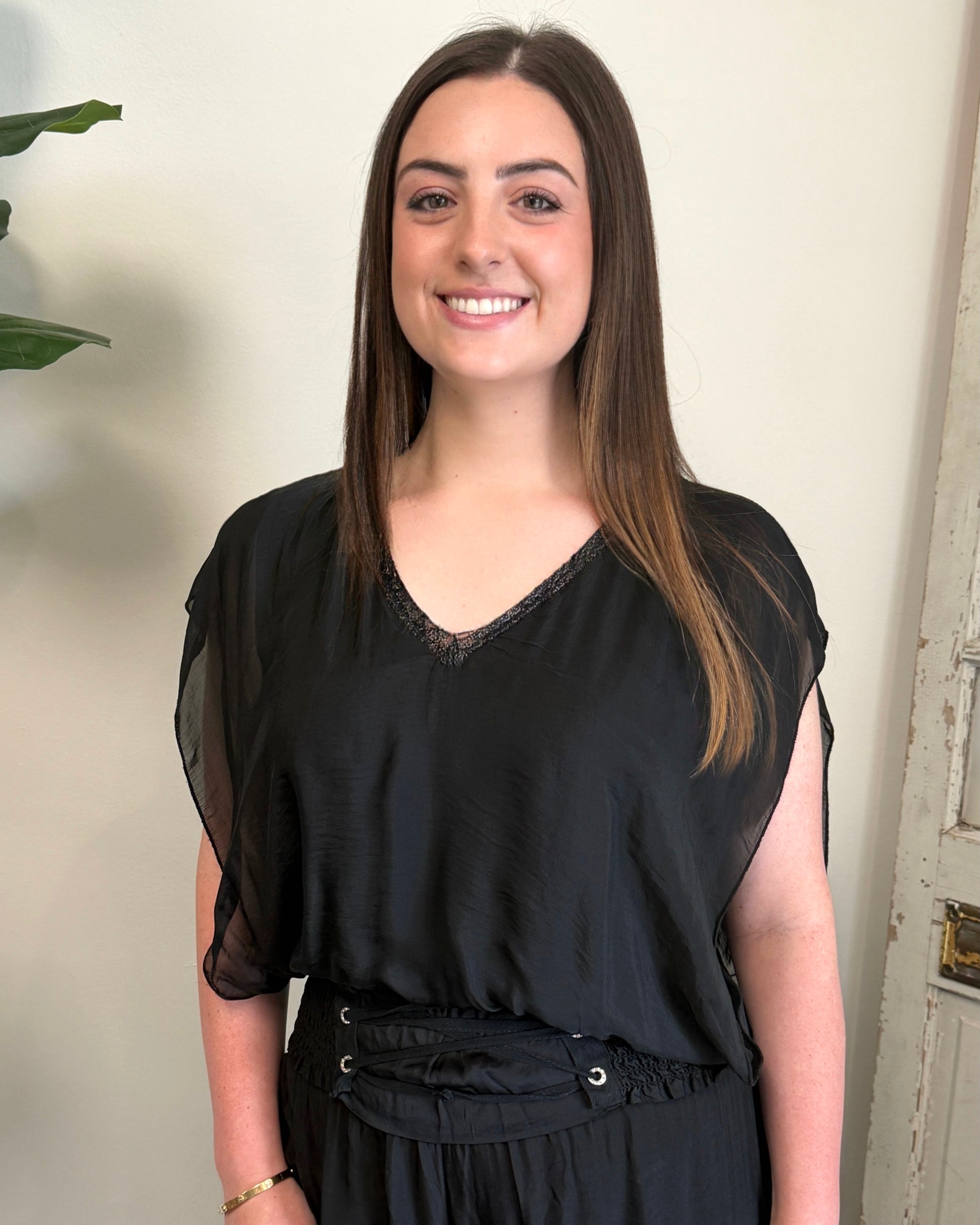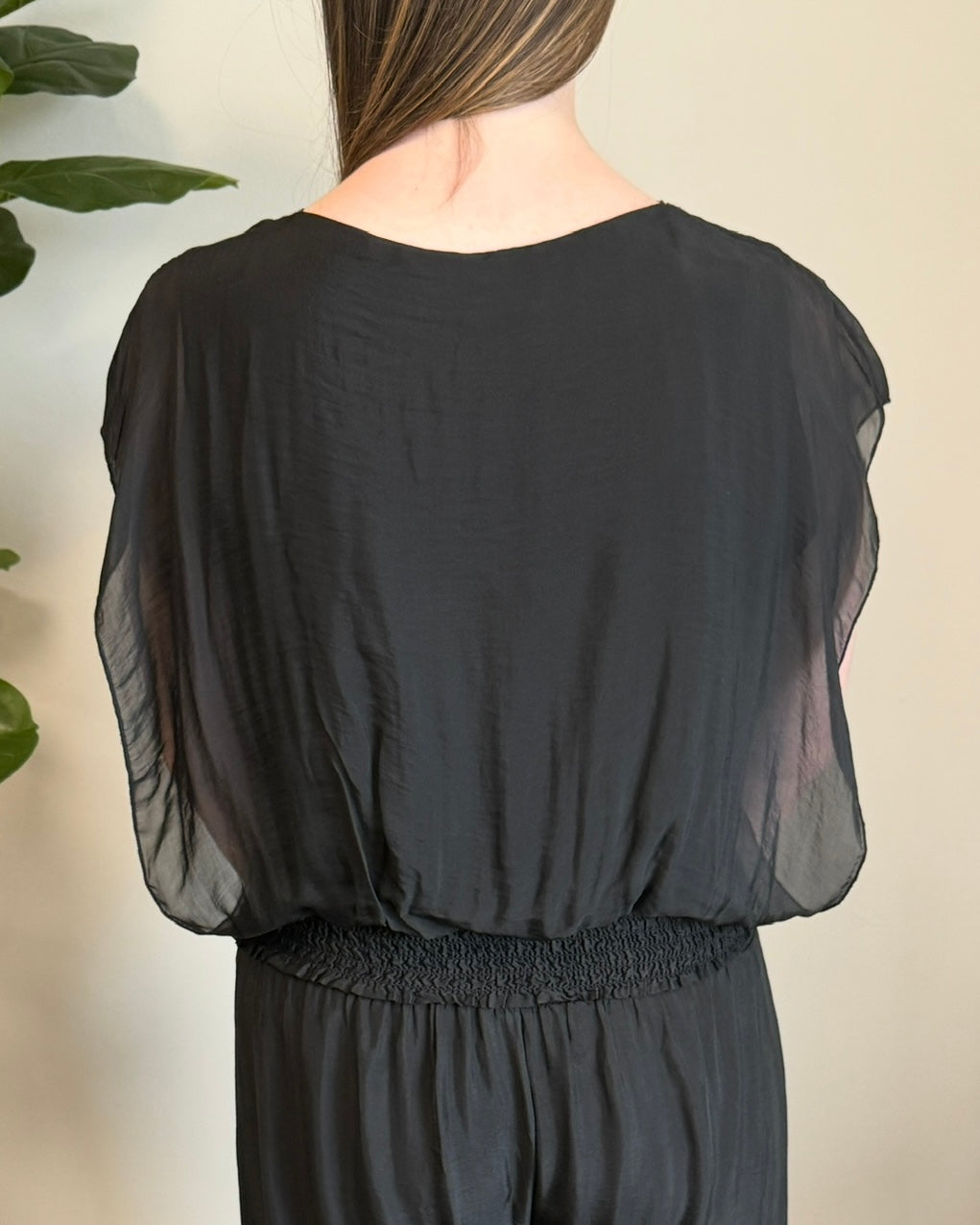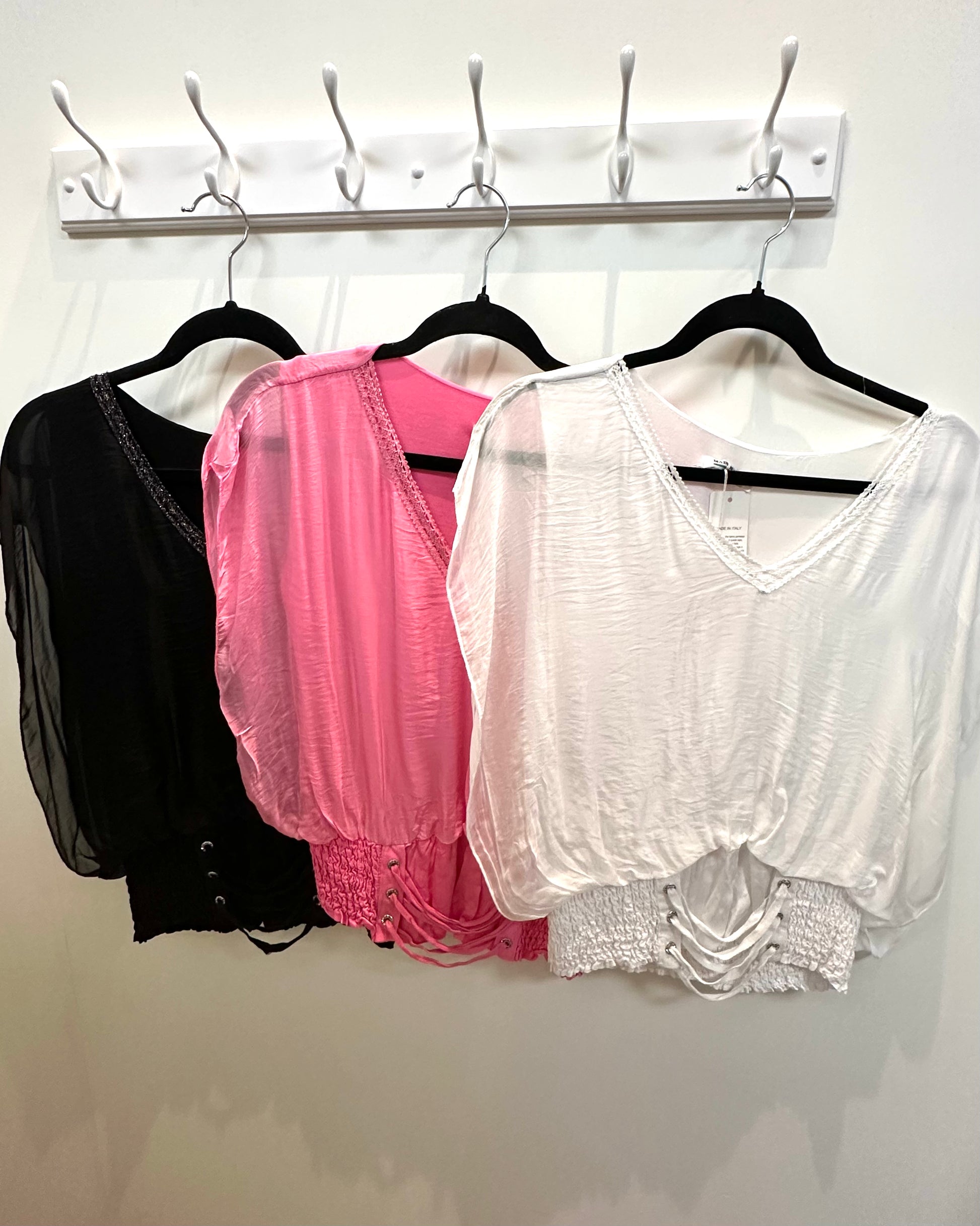 Elevate your wardrobe with our Elastic Waist Line Silk Top. This stunning piece features a flattering v-neck and shimmering fabric that catches the light with every movement. The comfortable elastic waistband creates a perfect silhouette while the faux tie adds a touch of sophistication. Perfect for transitioning from day to evening with effortless style.
