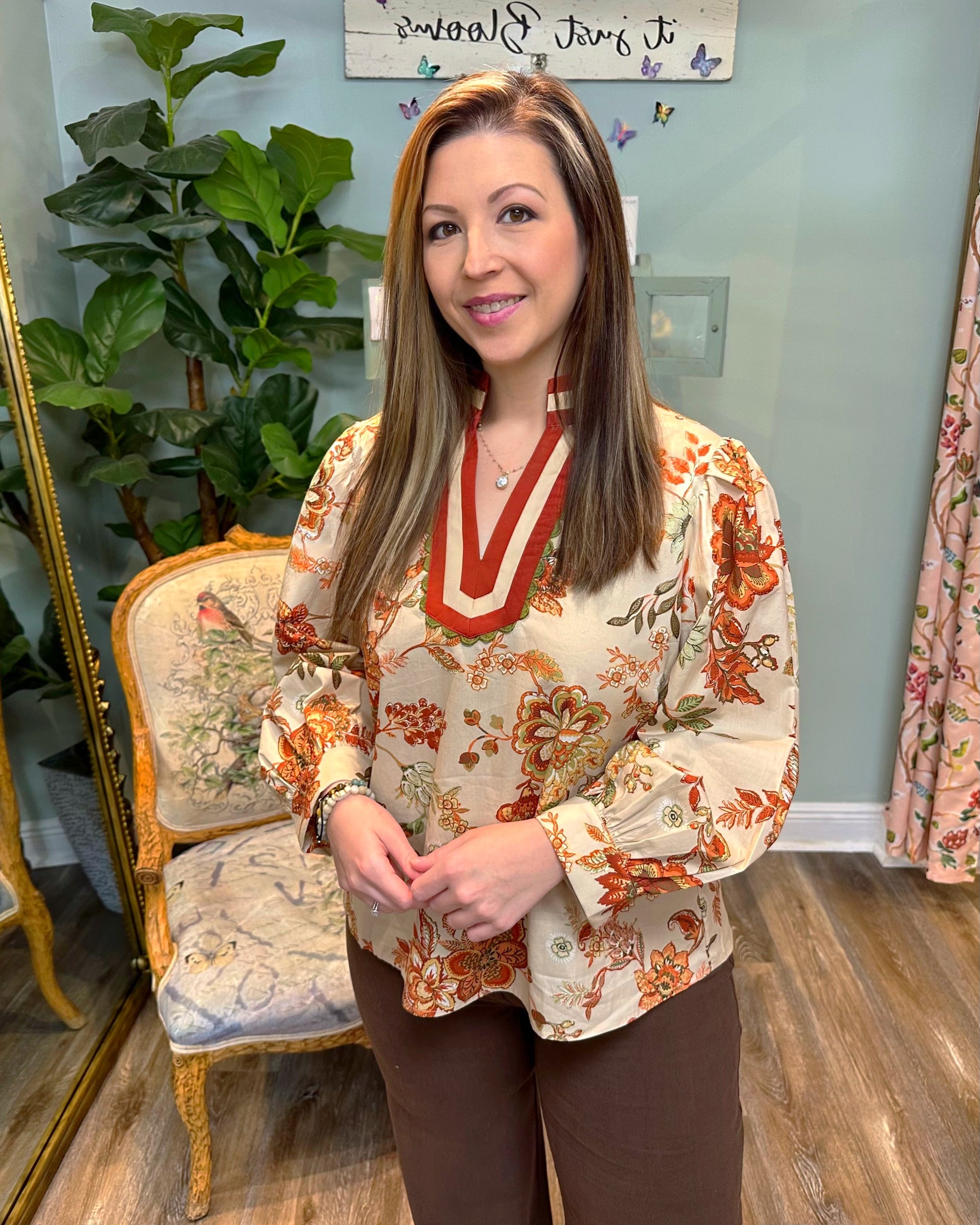 Elevate your wardrobe with our Fall Floral LS V-neck top! Made with ultra-soft fabric and a flattering V-neck design, this top is perfect for any occasion. Embrace the vibrant floral print and add a touch of elegance to your look. Don't settle for ordinary, stand out with our Fall Floral top!