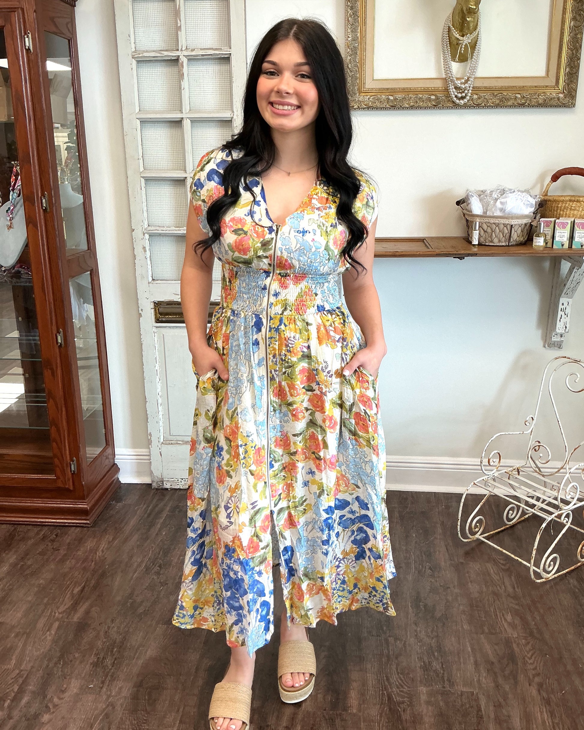 Fresh and flattering, this Floral Dress features a bold print and a front zipper for a modern twist. Made with soft, breathable fabric and a comfortable fit, it’s perfect for sunny days or casual outings with a little edge.