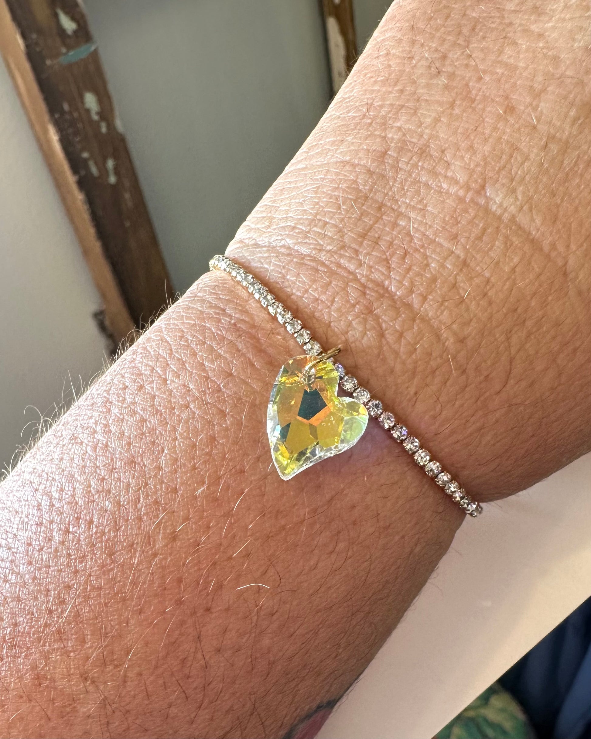 Add a touch of elegance and love to your outfit with our Heart Charm Tennis Bracelet. This beautiful bracelet is crafted with high-quality materials and features a delicate heart charm, adding a romantic and feminine touch. Perfect for any occasion, it's a must-have accessory for every fashion-forward individual.