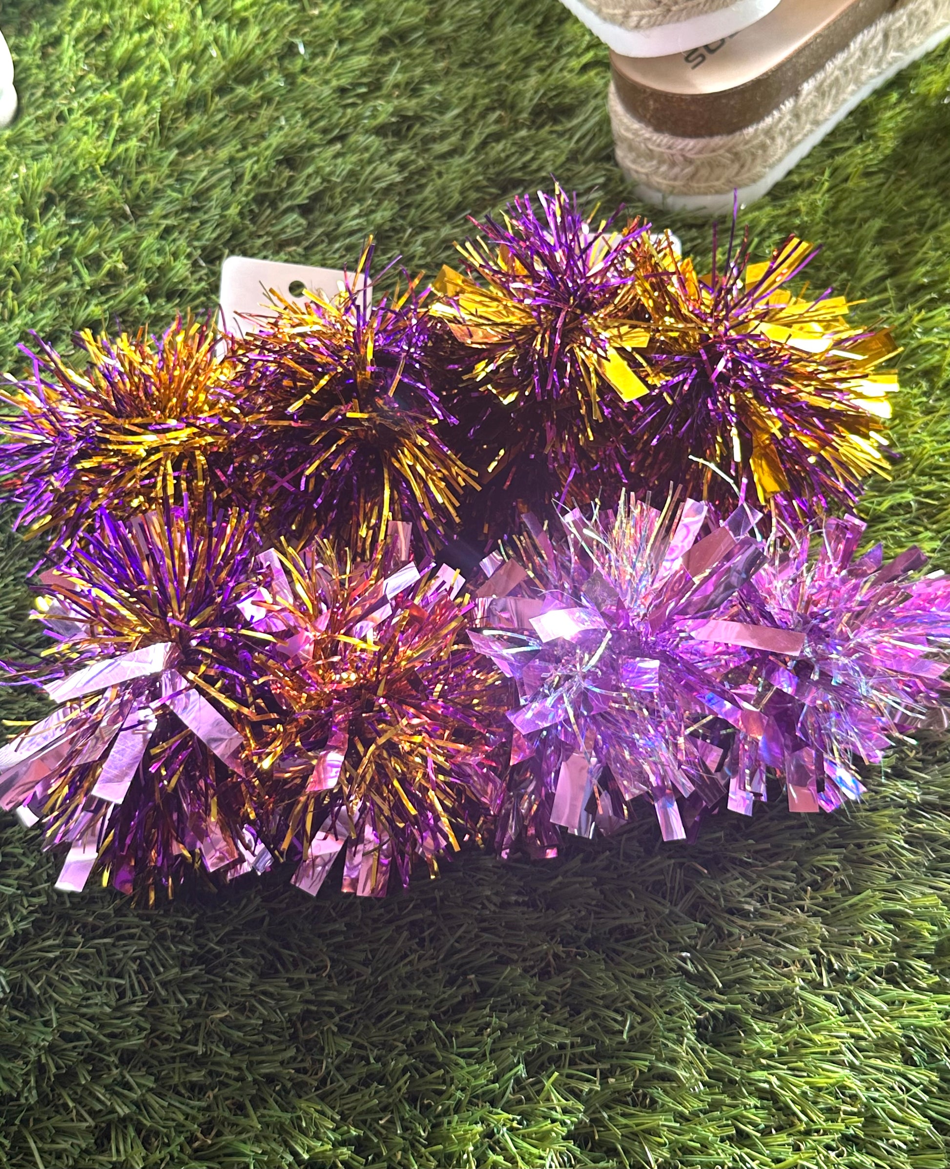 Turn up the team spirit with these bold and dazzling purple and gold tinsel earrings! Lightweight but full of flair, they’re the perfect accessory to catch every eye in the crowd. Whether you're tailgating or cheering from the stands, these statement earrings bring just the right amount of sparkle and sass. Because true Tiger fans don’t just wear their colors—they shine in them.