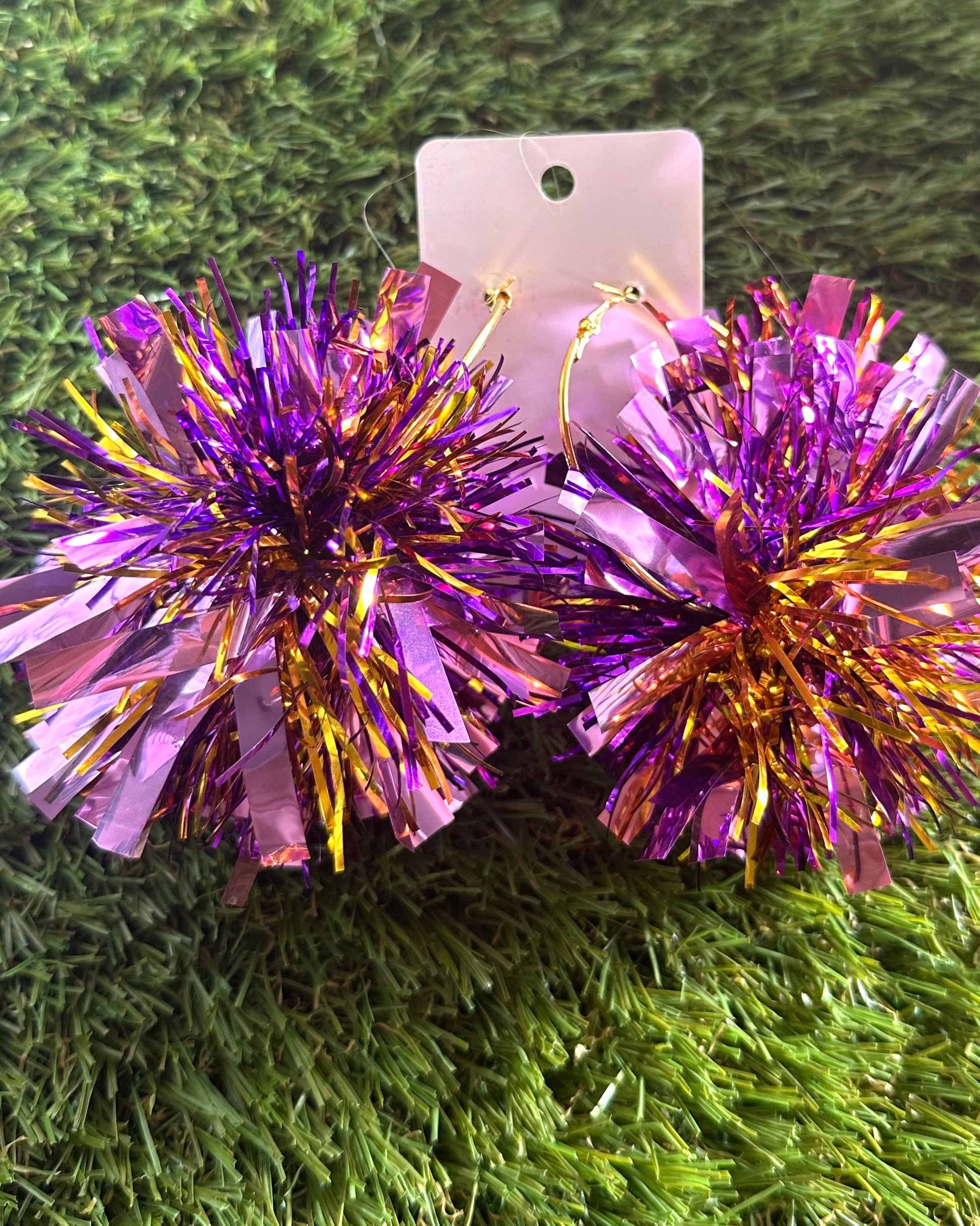 Purple and Gold Tiger Gameday Tinsel Earrings