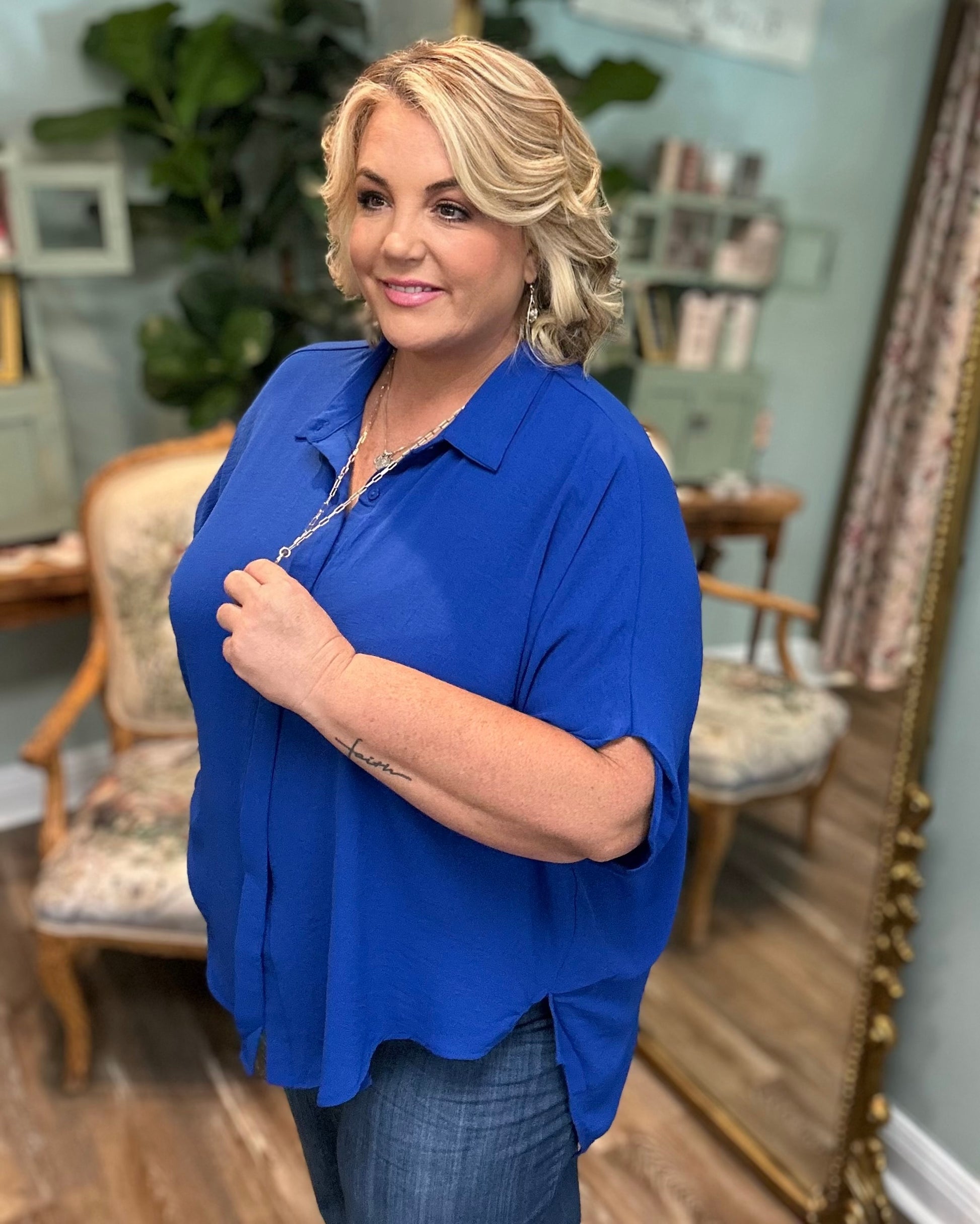 Royal Blue Oversized Button Down Hi/Lo Shirt