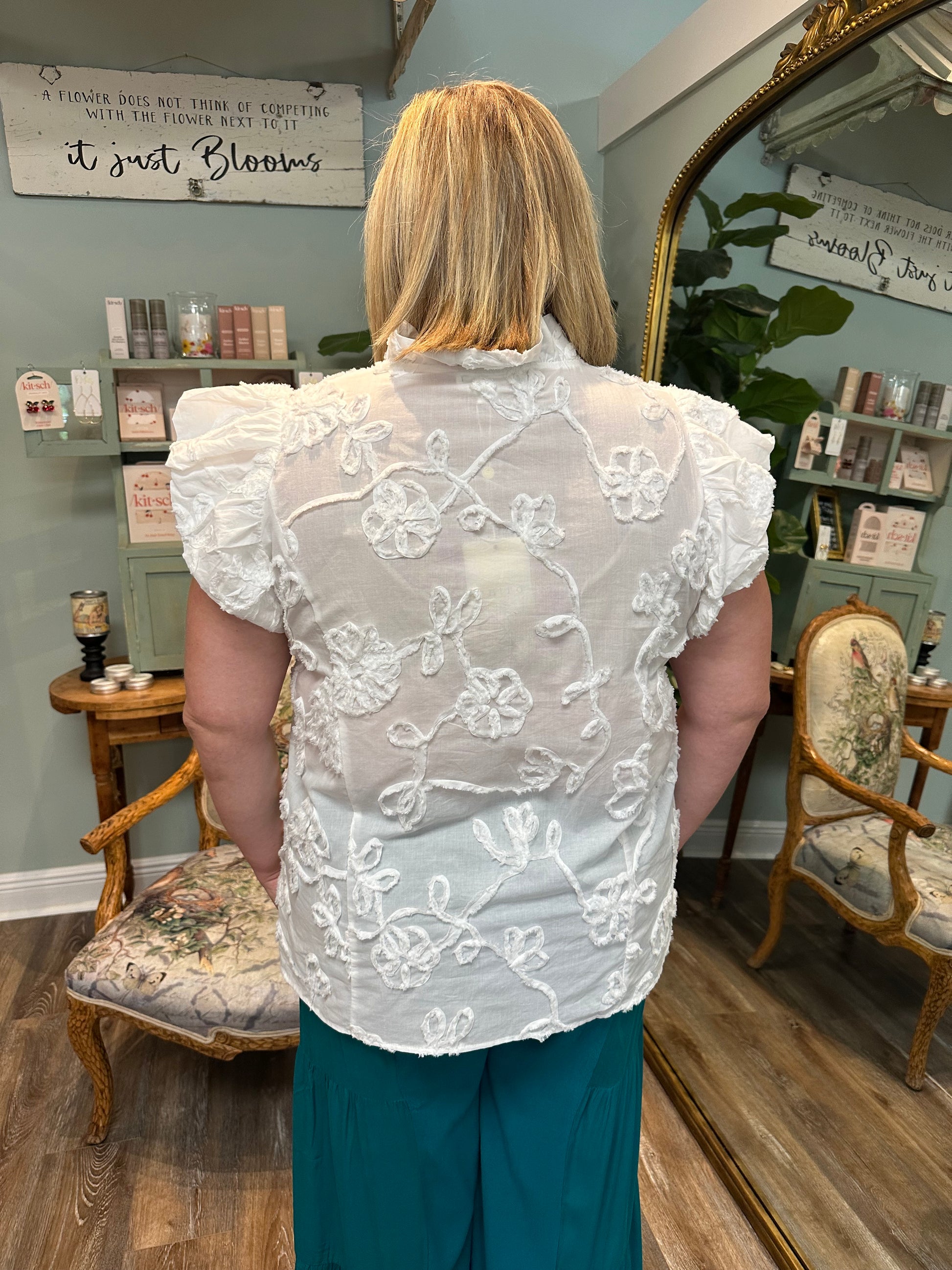 Elevate your wardrobe with this sophisticated white button-up shirt, featuring an exquisite white flower embroidered detail. Its subtle yet elegant design adds a refined touch to any outfit, perfect for both professional settings and stylish casual wear. Crafted to offer a polished look, this shirt combines classic tailoring with delicate artistry for timeless appeal.